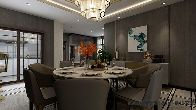 金屬飾條裝飾的頂,加上水晶燈,還有一些飾品的修飾使得整個餐廳上升了一個層次。