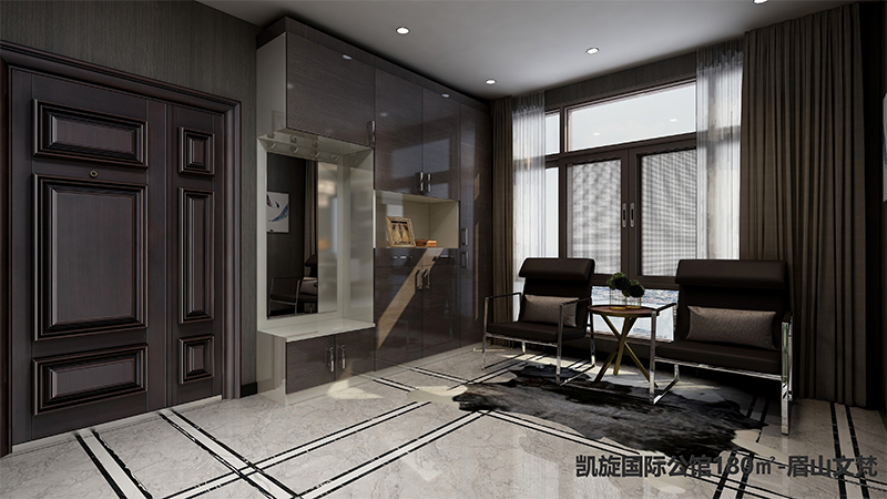 入口進來,便是我們的入戶花園,色調上的黑白灰,給人帶來一種神秘之感,柜體和休閑椅的陪襯,低調中凸顯奢華。
