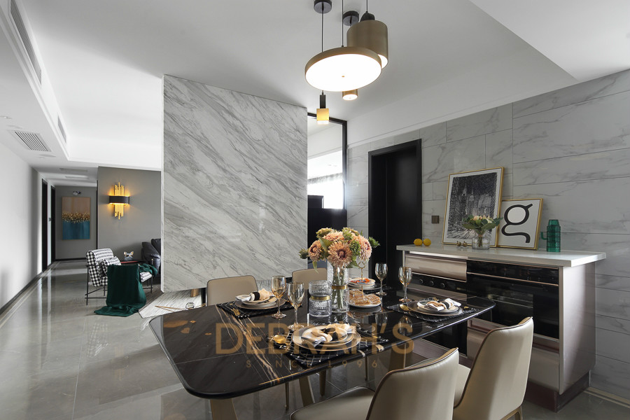 120平米的房子要4室空間,確實(shí)略顯空間擁擠,厘米之間的調(diào)整都經(jīng)過(guò)深思熟慮。開放式廚房成為最佳選擇,社交式廚房餐廳聯(lián)通客廳空間,瞬間提升空間視覺(jué)感。